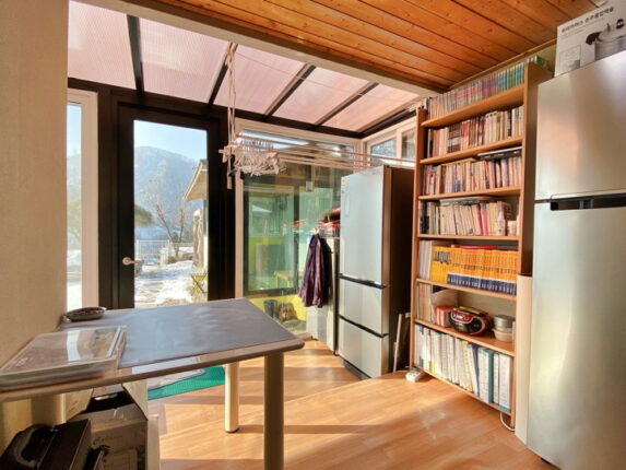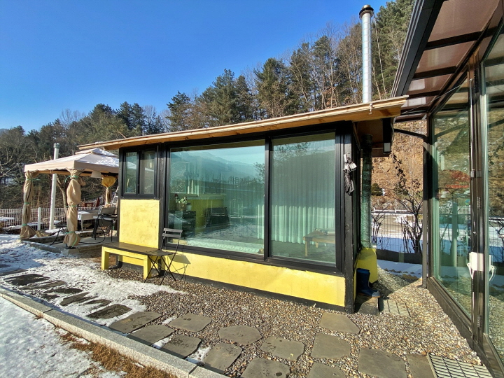 마당 한켠에 아궁이 찜질방이 있으며