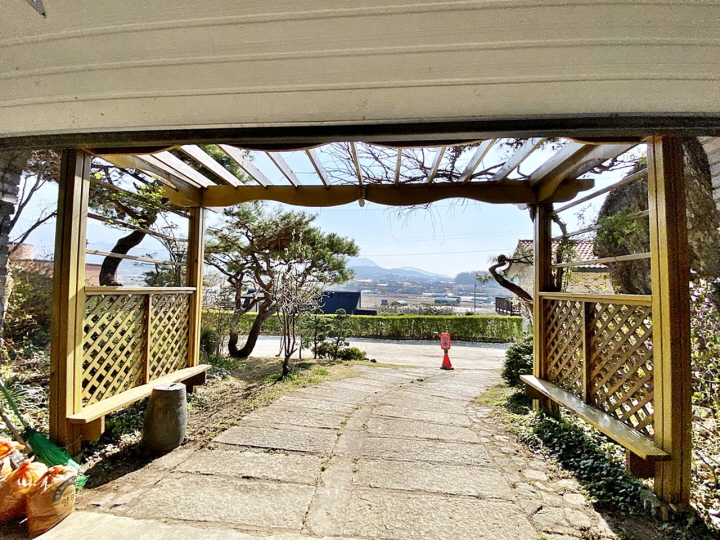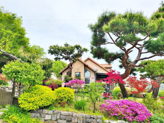 마당에는 소나무등 각종 조경수가 식재되어 있으며