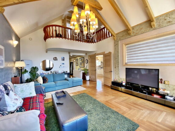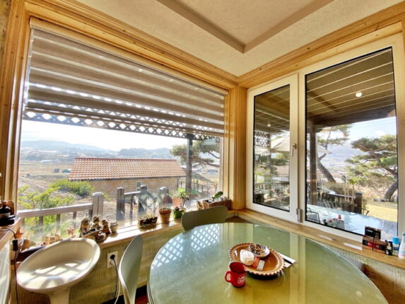 거실 높은 천장 구조 / 태양열 온수 /3중 시스템 창호/ 스페니쉬 기와
