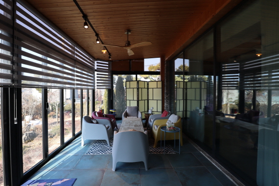 거실 펠렛 난로 / 시스템 창호 / 썬룸 / 전동주차 2대