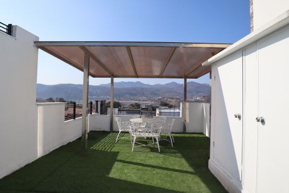 썬룸위 태양광 / 잘관리된 정원 / 각층 마다 테라스 강조망