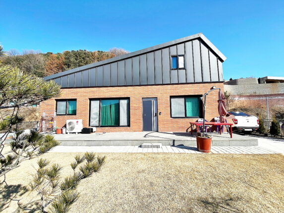 외장 (벽돌)/ 지붕 징크 / 이중 시스템 창호 / 2단 지형