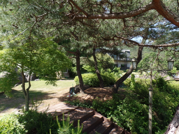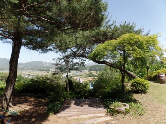 고급 소나무와  자연석돌이 조화롭게 잘관리되어있는 정원이 있으며